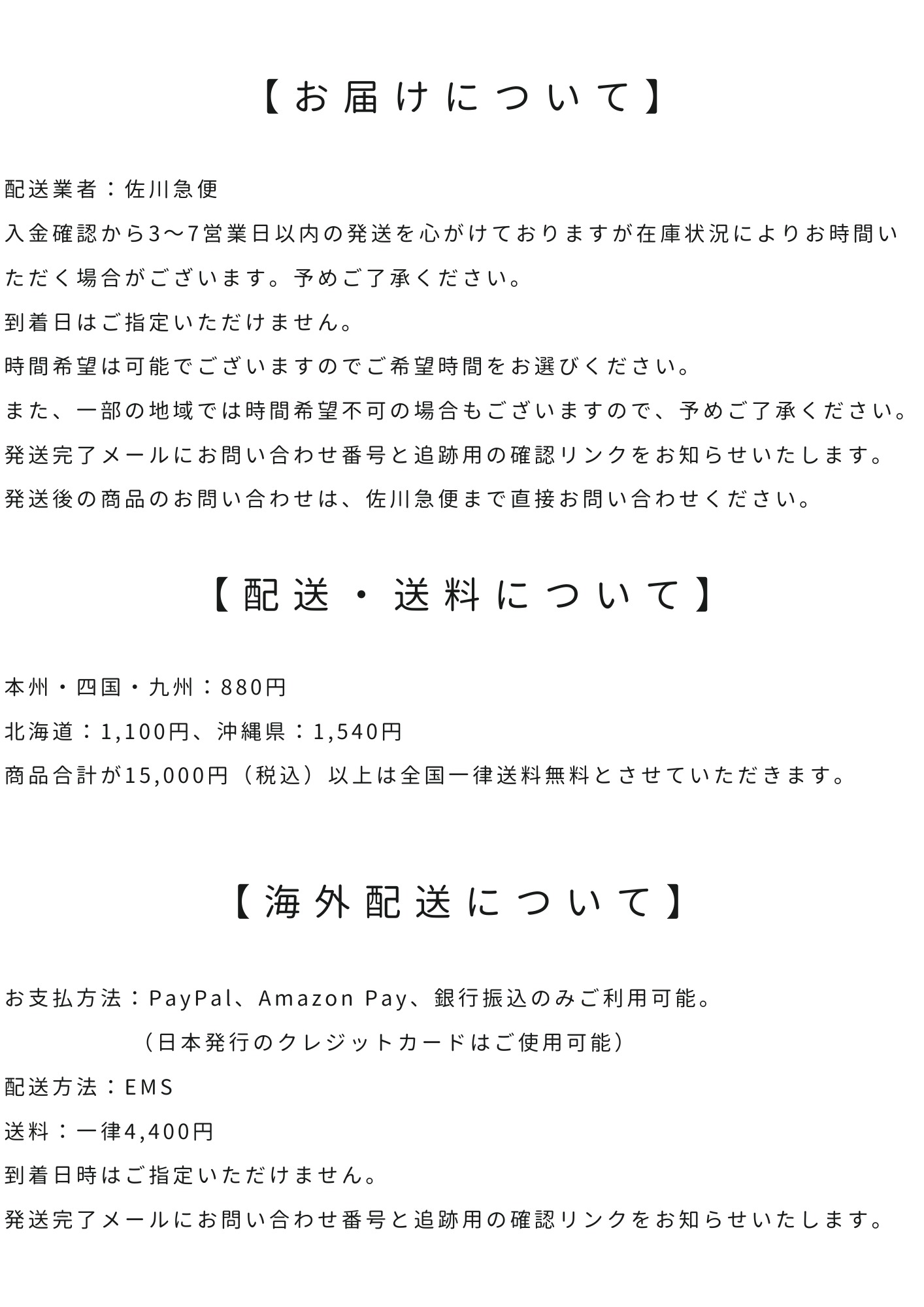 商品合計15,000円(税込)以上で全国一律送料無料。