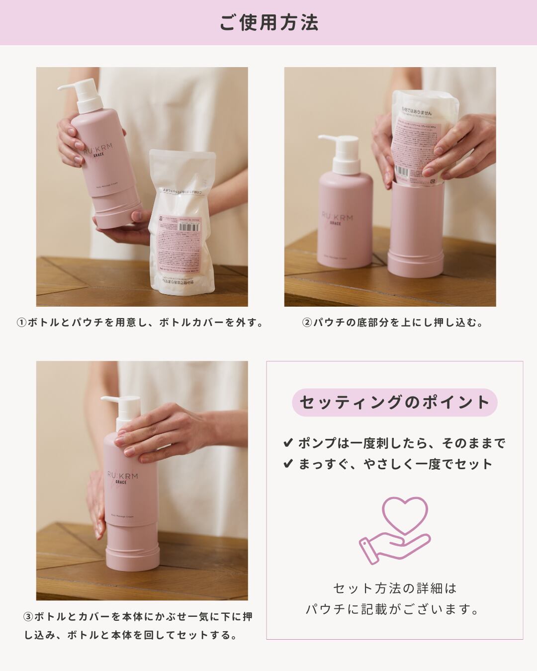 セルフマッサージ専用に開発されたRU:KRMクリームを最大限に活用する、マッサージメソッド『リリナージュ®』。